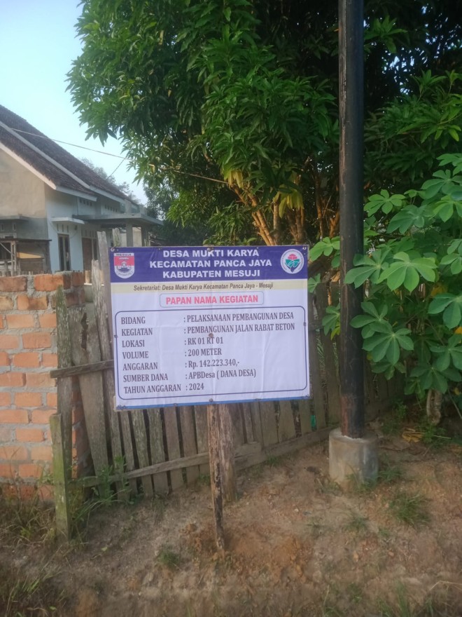 Pemerintah Desa Mukti Karya Kecamatan Panca Jaya Kabupaten Mesuji Melaksanakan Pembangunan Infrastruktur Rabat Beton Tahap Pertama dengan Dana Desa (DD) Tahun 2024